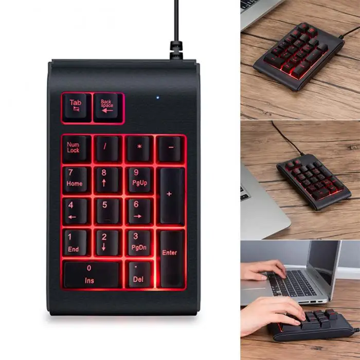 Best Price - Wired Mini Keyboard with 19 Keys LED Backlight Office One Hand Keypad for Computer PC Laptop QJY99 Very Good